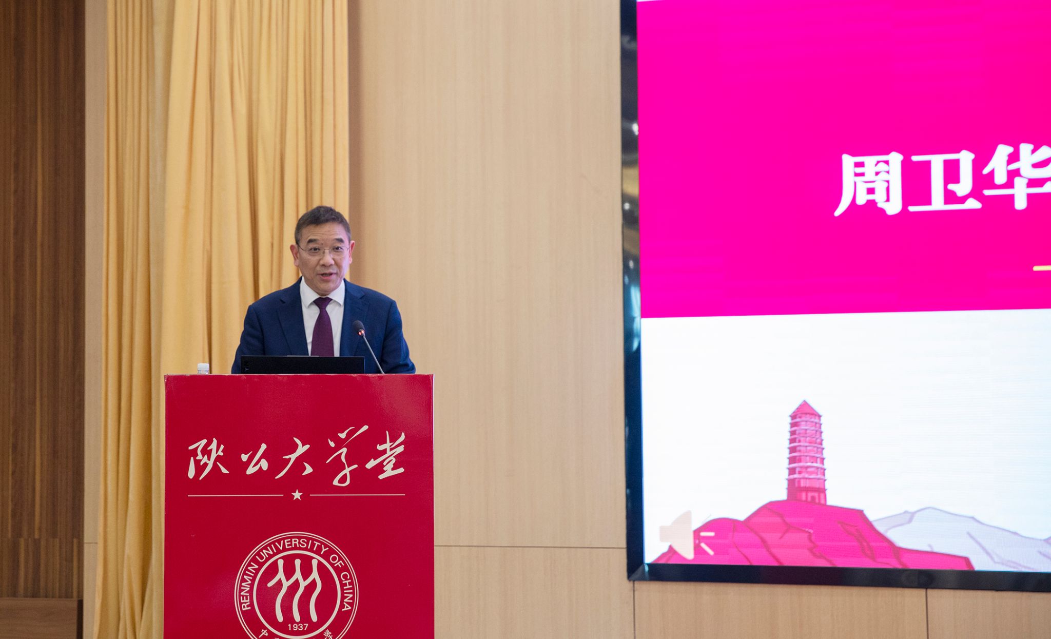本网讯(通讯员 向秀峰/文 吴志勇/图) 3月30日,中国人民大学主办的“陕公大学堂”系列公益讲座在我校开讲。中国人民大学二级教授、博士生导师、教育部“新世纪”人才称号获得者、中国世界经济学会副会长、中国国际经济合作学会常务理事雷达作了题为《中国式现代化与中国特色的对外开放》的讲座。中国人民大学湖北校友会顾问、湖北美术学院纪委书记张以林,我校党委常委、宣传部部长张锐,中国人民大学湖北校友会部分成员以及文学与传媒学院师生约350人聆听了讲座。活动由我校文学与传媒学院党委书记周卫华主持。
