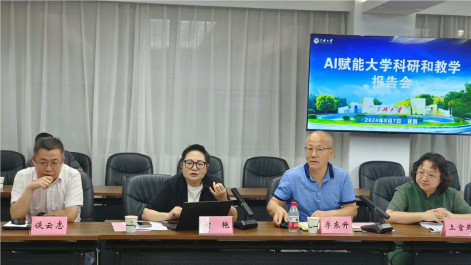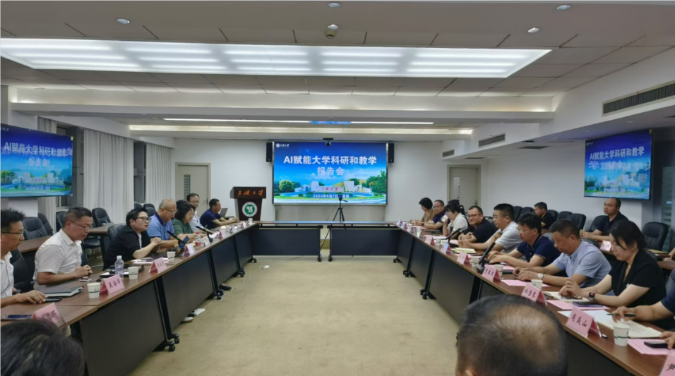 本网讯(通讯员 汤婧 田京京)8月7日下午,教务处与科技发展研究院联合举办《AI赋能大学科研和教学报告会》,报告会通过“线上+线下”的方式举行。校长黄艳出席报告会并讲话,党委常委、副校长李东升主持报告会。