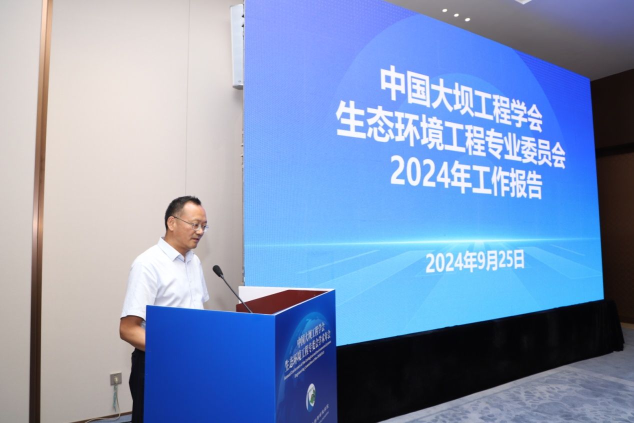 生态环境工程专委会常务副秘书长蔡明作专委会年度工作报告,他展示了专委会在过去一年中在技术交流、科研攻关、技术咨询等方面取得的成果;并对支持专委会工作的各级领导、专家和成员单位表示感谢,对未来的工作表达了期望。