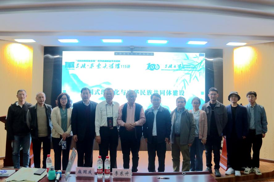 本网讯(通讯员 彭娟 刘雪姣 唐婷) 10月30日上午,由三峡文化与经济社会发展研究中心、民族学院、云鼎4118网站湖北省铸牢中华民族共同体意识研究基地、云鼎4118网站宜昌市铸牢中华民族共同体意识研究基地承办的“三峡·求索大讲坛”第115讲、“滋兰讲坛”第214讲在智库报告厅举行。中央民族大学麻国庆教授带来了一场题为“中国式现代化与中华民族共同体建设”的学术讲座。本次讲座由学校党委常委、副校长李东升教授主持。民族学院全体师生和其他学院部分教师齐聚一堂,聆听了讲座。