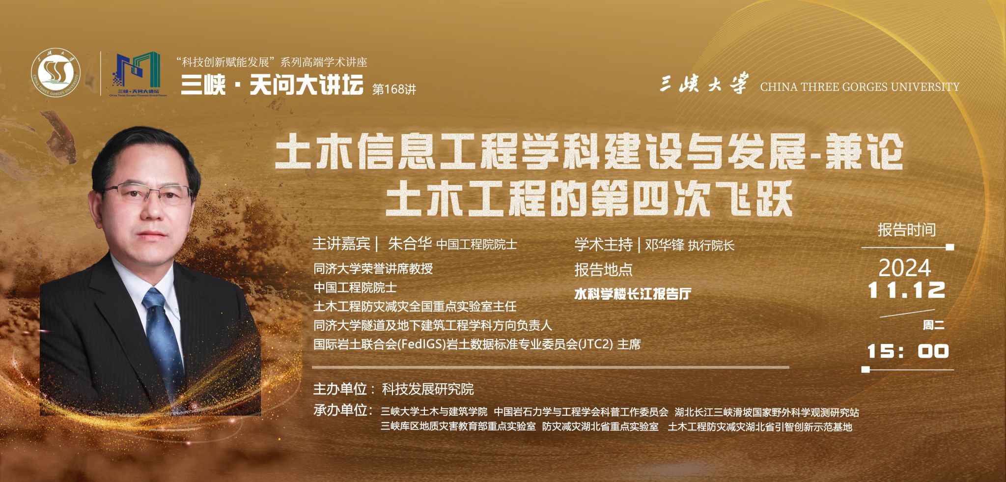 本网讯(通讯员 许钊) 11月12日下午,中国工程院院士、同济大学荣誉讲席教授、土木工程防灾减灾全国重点实验室主任、同济大学隧道及地下建筑工程学科方向负责人、国际岩土联合会(FedIGS)岩土数据标准专业委员会(JTC2)主席朱合华做客“三峡•天问大讲坛”第一百六十八讲,在长江报告厅为云鼎4118网站师生做了题为《土木信息工程学科建设与发展-兼论土木工程的第四次飞跃》的学术报告。报告会由土木与建筑学院执行院长邓华锋教授主持,学院师生300余人聆听了报告。本次报告会由科技发展研究院主办、土木与建筑学院承办。