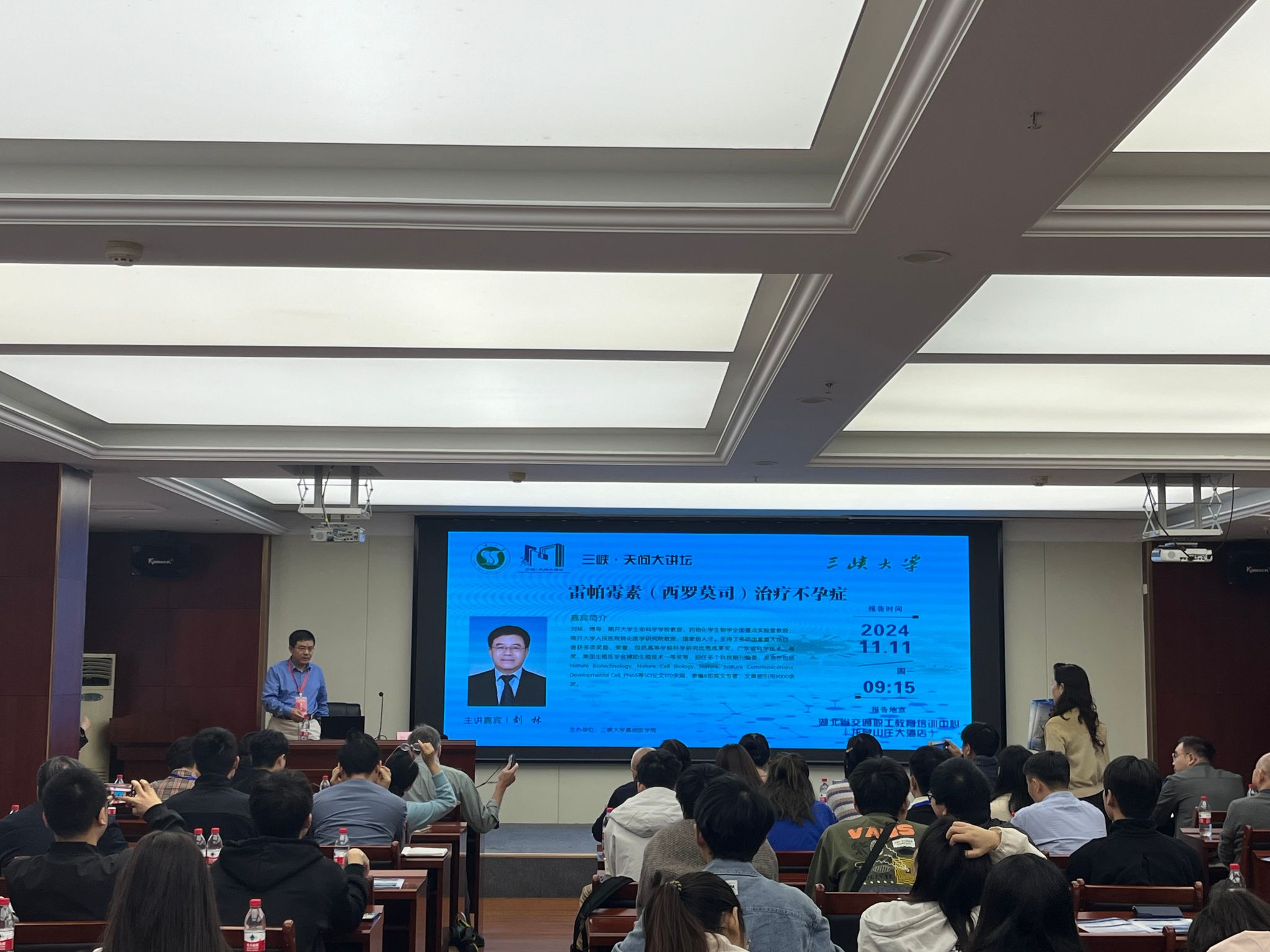 本网讯(通讯员 刘心 赵红诚 曹春雨) 秋高云淡,金风送爽。11月11日上午,“三峡•天问大讲坛”第167讲顺利进行。国家级人才、南开大学生命科学学院刘林教授受邀作专题报告。报告会由北京协和医院张宏冰教授主持。来自我校基础医学院、健康医学院以及临床医学院的100余名师生现场聆听了报告。