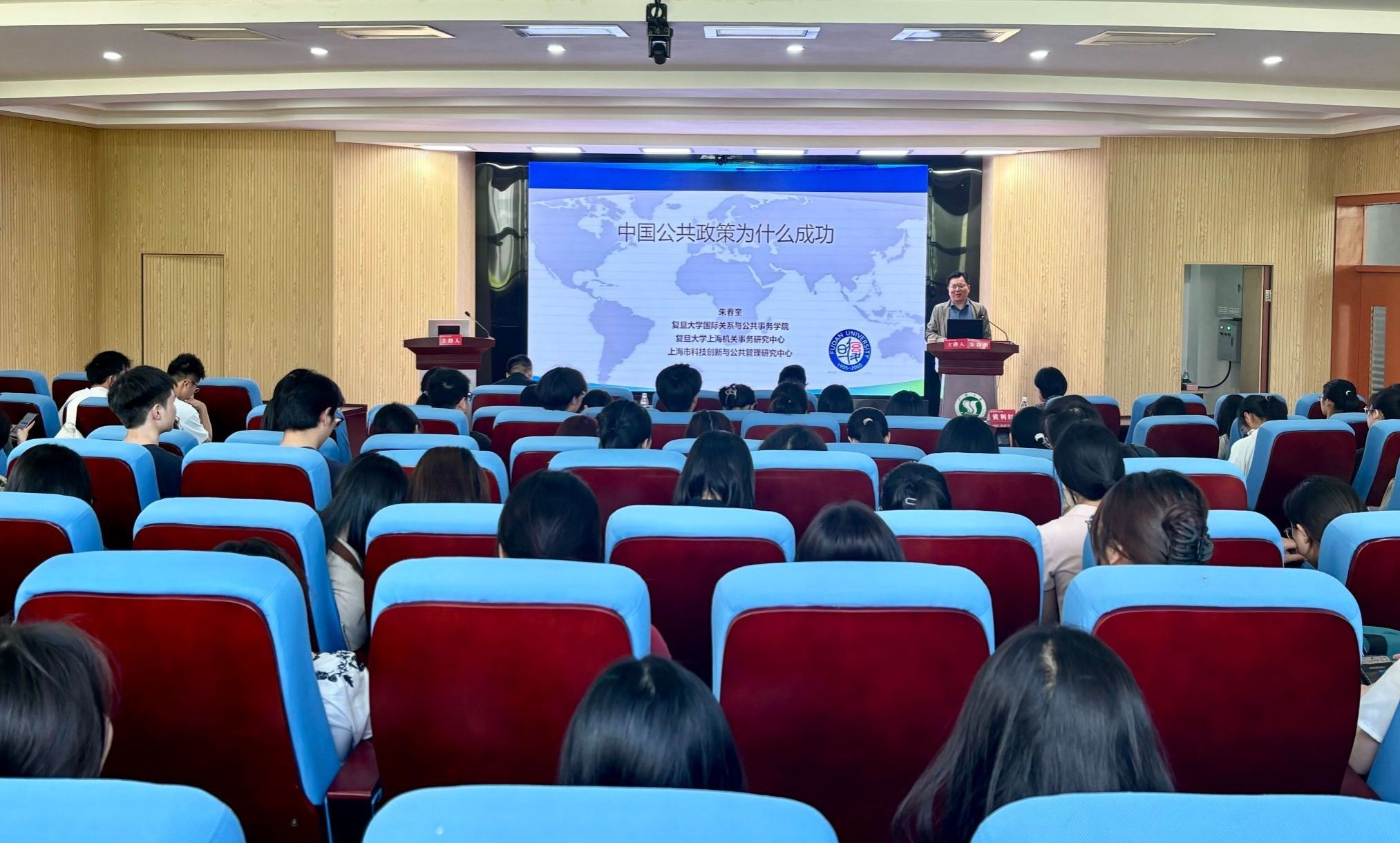 本网讯(通讯员 胡亚琼 张园) 4月8日,复旦大学国际关系与公共事务学院朱春奎教授应邀为我校师生带来了一场题为《中国公共政策为什么成功》的精彩学术报告。学校法学与公共管理学院公共管理系与法学系教师、法学全日制研究生、行政管理专业本科生以及来自一带一路国家部分留学生等150余人共同聆听了报告。