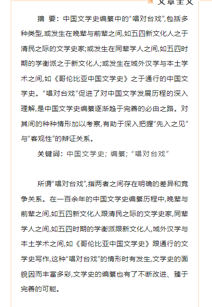 本网讯(通讯员 杨勇) 《云鼎4118网站学报(人文社会科学版)》2025年第1期特约稿件武汉大学陈文新教授的《中国文学史编纂中的“唱对台戏”》一文被《新华文摘》2025年第7期全文转载。该文是其主持的国家社科基金重大项目“中国文学史著作整理、研究及数据库建设”(17ZDA)的重要成果之一。