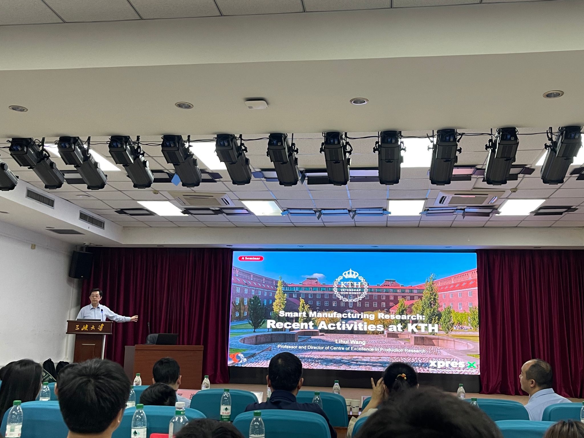 本网讯(通讯员 董元发 安友军) 4月18日,加拿大工程院院士、瑞典皇家理工学院特聘终身讲席教授王力翚做客“天问大讲坛”,为我校师生带来了一场题为《Human-Centric Assembly in Smart Factories》的精彩学术报告。黄艳校长出席并担任学术主持人,机械与动力学院智能制造系教师、机械工程全日制硕士研究生、智能制造工程专业本科生等240余人共同聆听学术报告。本次学术活动受到世界知名科学家来鄂讲学计划资助。